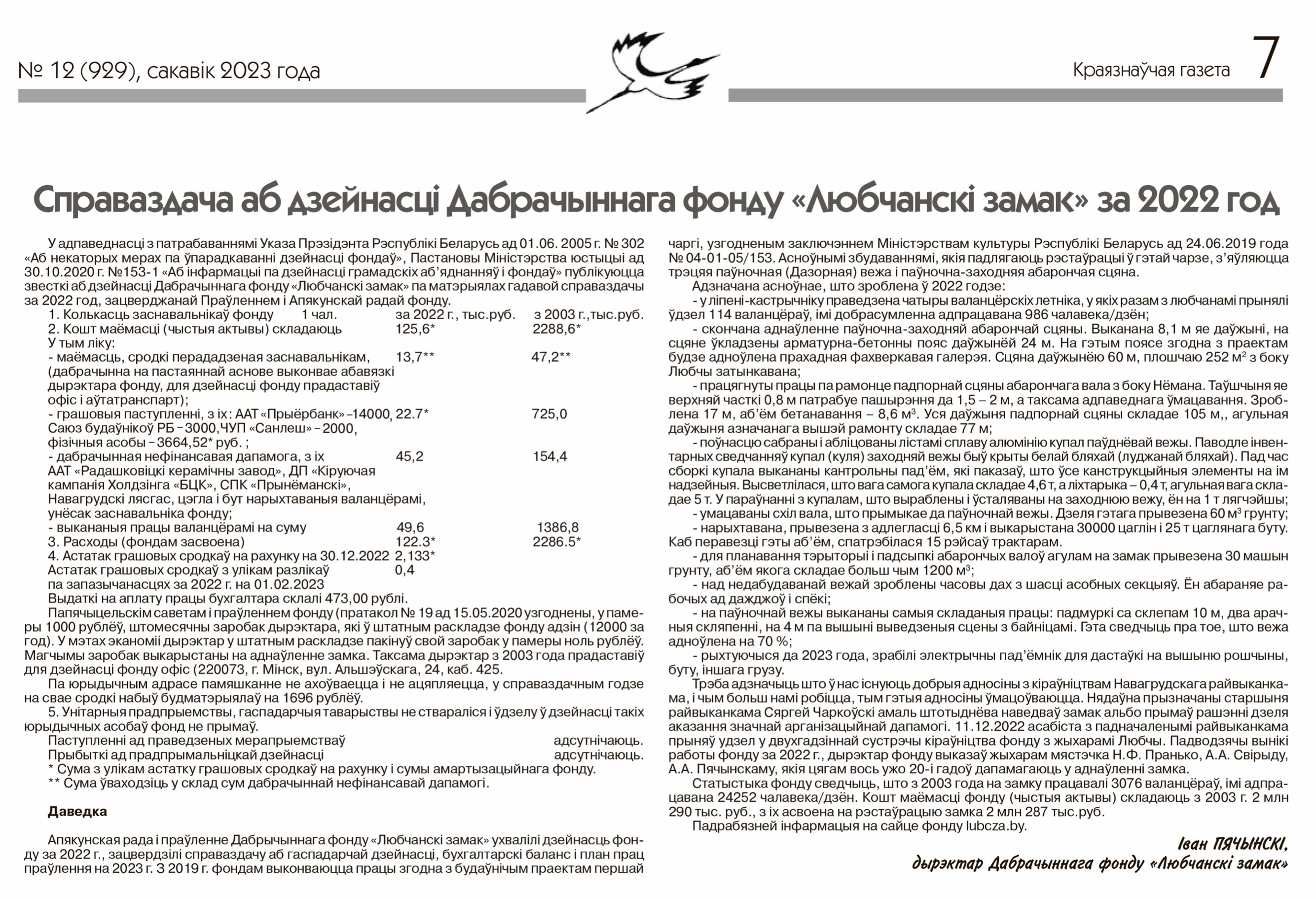 Працягнуты рамонт падпорнай сцяны ад ракі Нёман. Усяго адрамантавана 77м ад яе даўжыні 105 метраў. У 2022 годзе выканана 17 метраў, самыя складаныя па аб’ёму зямляных прац.