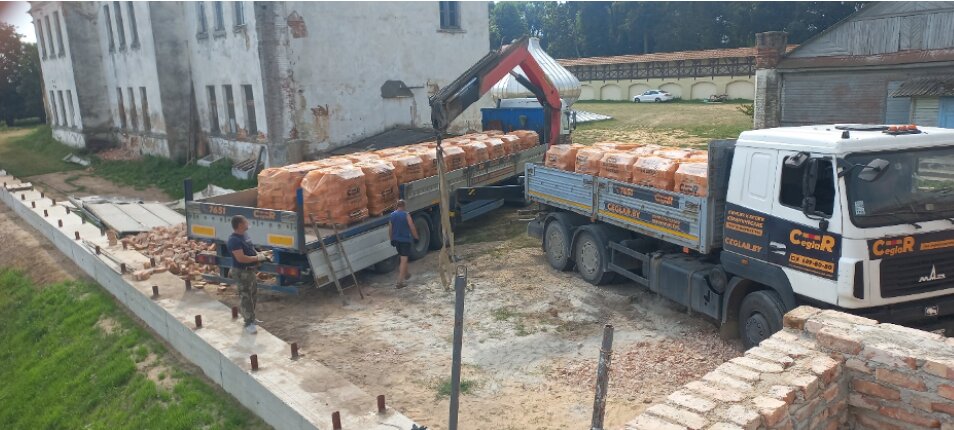 Працягваем нарыхтоўку цаглін і бута, разбіраем будынак на аддаленні 6.5 км ад г.п. Любча. 2022г. Нарыхтавана і выкарыстана 30 000 штук цаглін і больш за 25 куб.м. бута.