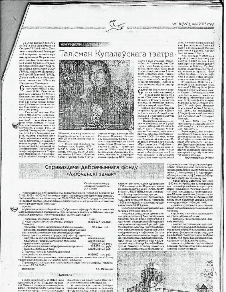Справаздача аб дзейнасці Дабрачыннага фонду ‘Любчанскі замак’ за 2014 год.