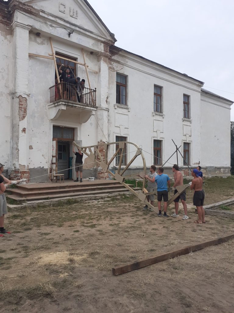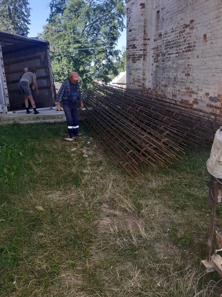 Шмат часу страчана на разборку рыштавання якое было выкарыстана пры ўзвядзенні арачнага скляпення падвальнага памяшкання вежы. Пераўсталявана і умацавана хамутовае трубчатае рыштаванне выкол вежы.