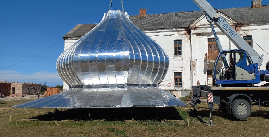 2022 г. Завершаны аблiцовачныя працы і зборка купала, выкананы кантрольны падъем, у зборцы вага купала 5 тон.