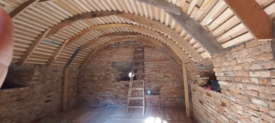 Працягваем нарыхтоўку цаглін і бута, разбіраем будынак на аддаленні 6.5 км ад г.п. Любча. 2022г. Нарыхтавана і выкарыстана 30 000 штук цаглін і больш за 25 куб.м. бута.